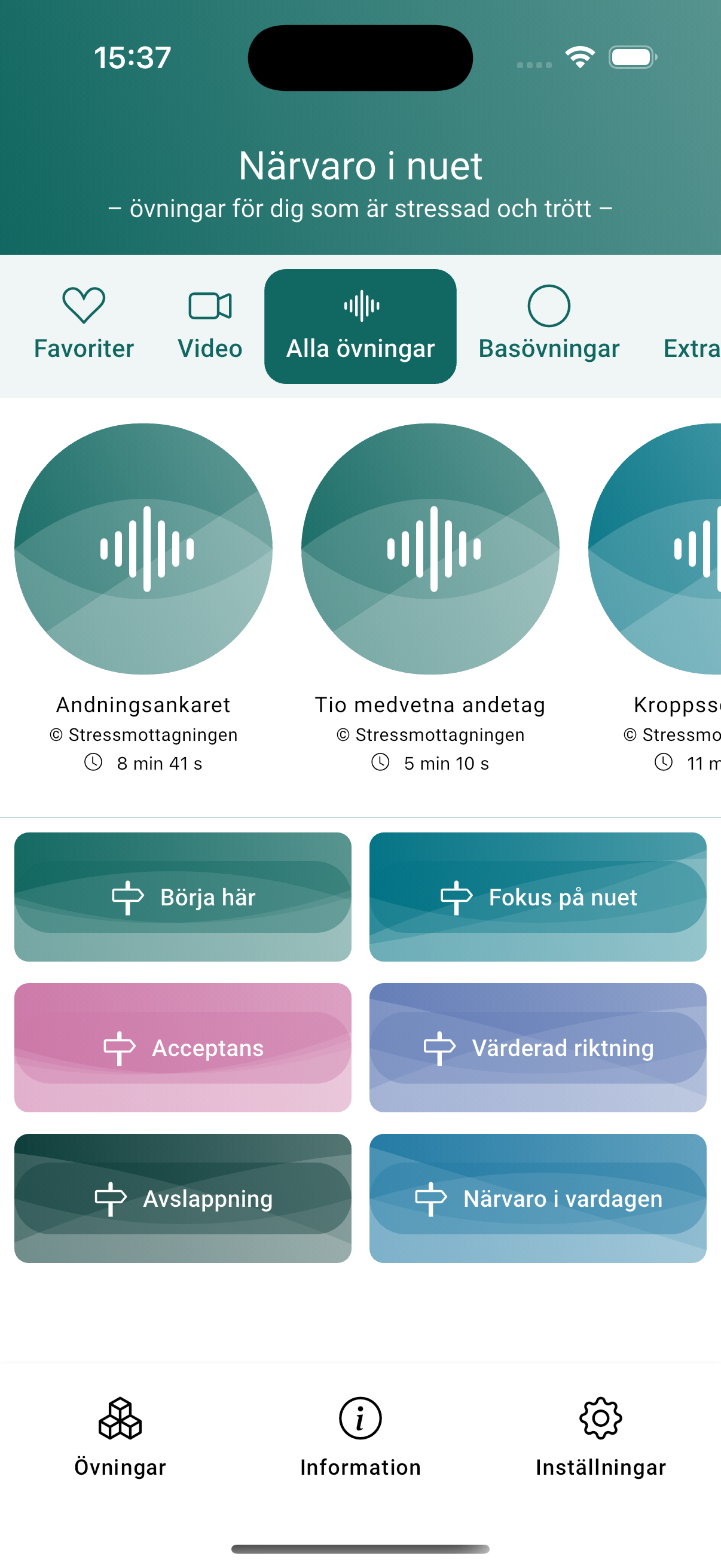 Övningarna är framtagna av psykologer, fysioterapeuter och arbetsterapeuter utifrån den psykologiska behandlingsmetoden Acceptance and Commitment Therapy (ACT), som är en del av kognitiv beteendeterapi (KBT). De går utmärkt att använda på egen hand men kan också vara ett bra komplement till arbete i kontakt med en psykolog.